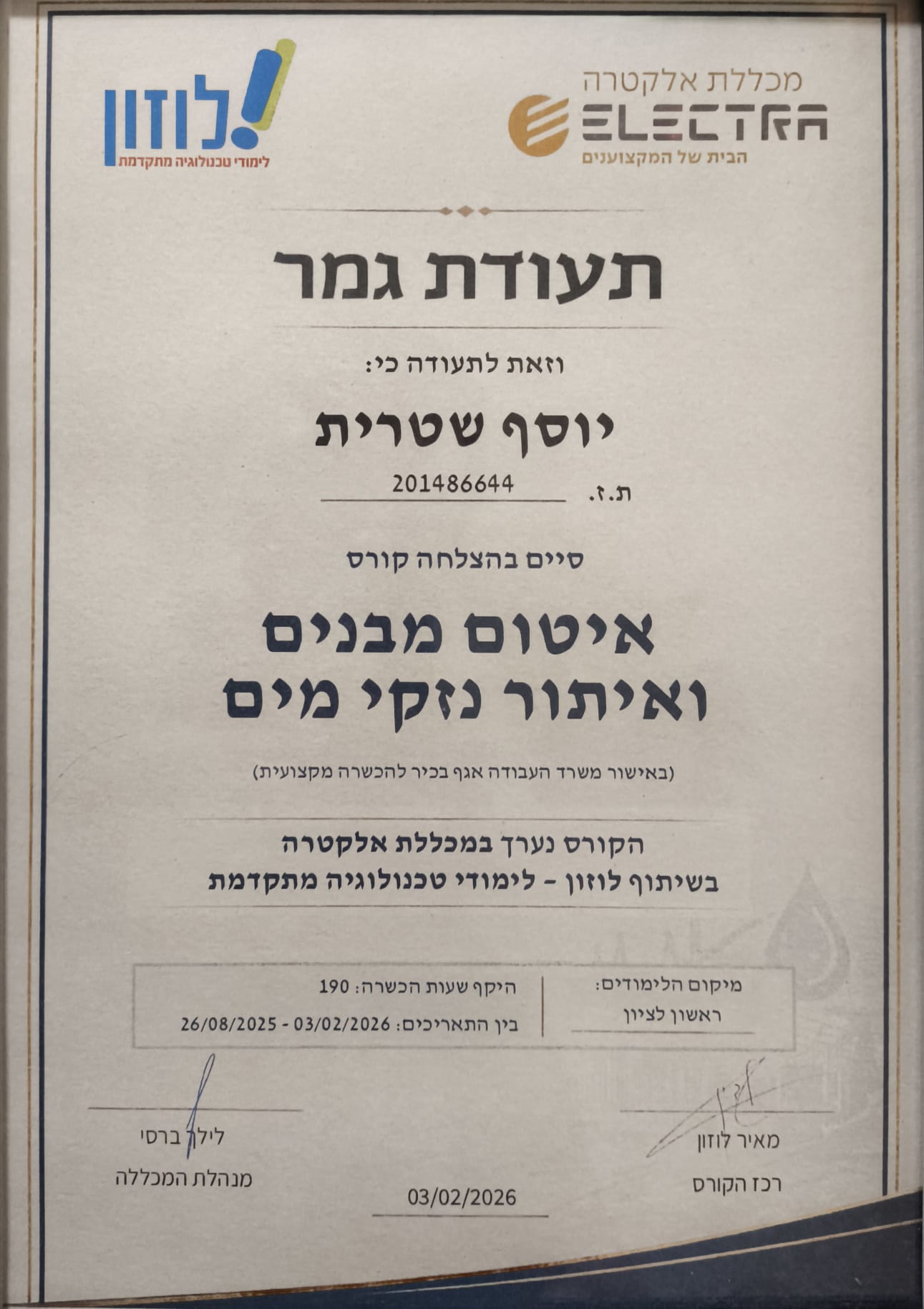 עם ניסיון של למעלה מ-10 שנים בעולם הבנייה, הסמכות מקצועיות ושיתופי פעולה עם אנשי מקצוע איכותיים השירות הינו איכותי ואמין.