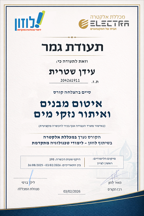 השילוב בין מומחיות באינסטלציה לבין הבנה מעמיקה של מערכות איטום ומעטפת המבנה יחד עם ניסיון בעבודה כעד מומחה—מאפשר מתן אבחון מקיף, מדויק ואמין ברמה מקצועית גבוהה.